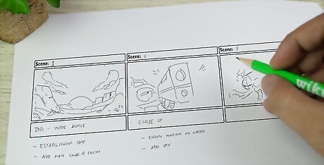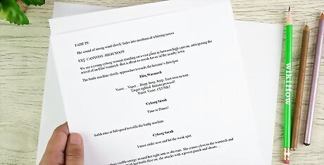 Compose your script and proofread it carefully to avoid mistakes. Since a lot of comic storytelling is visual, focus on writing strong, punchy dialogue that communicates each character’s attitude. Give different characters different vocabularies and speech patterns to make them distinct. Once you’ve written your script, proofread it 2-3 times to check your spelling and word choice. Speech bubbles in comics are pretty small. Try to keep most of your dialogue as short as possible. A single speech or line of dialogue may require multiple panels if it’s really long. Make notes about what your illustrations might look like on the side of each page as you’re proofreading. This will make it easier to figure out what you want to draw. Share your script with a friend, parent, or teacher to see if they have any suggestions on how to improve your writing. Most comic book scripts are written like movie scripts. Simply put the characters name at the beginning of a line and write their dialogue out. Give each piece of dialogue a separate line to make it easy to read. Make notes about setting, tone, or theme in between your dialogue.