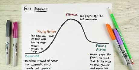 Create an outline for your plot and identify a conflict. What is your main character going to do and what is the main conflict of your story? Take a blank piece of paper and jot down a few ideas based on what you want your comic to be about. Put your conflict into the simplest terms possible to create a basic outline for what your story is going to explore. Conflict refers to the 2 people or ideas that are fighting against one another in your story. This can be as simple as superhero vs. villain or as abstract as freedom vs. order. Comedic comics don’t necessarily require conflict, but they sure help anchor the story in something concrete! Your comic doesn’t have to have a resolution if you want to turn your comic into a series.