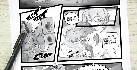 Use an online program to create simple digital comics. There are several free resources available online to make rudimentary comics, although most of them don’t offer the kind of creative control that most illustrators want. If you’re making a short comic or working on a school project though, they can make comic creation quite easy. Pixton, Strip Generator, and Make Beliefs can all be used to render simple comics in your online browsable comics can be found at https://www.pixton.com/. Pixton uses pre-rendered characters that you can place yourself to give them original dialogue. Make Beliefs is an easy-to-use site that can be found at https://www.makebeliefscomix.com/Comix/. It also uses pre-rendered characters though, and you can only have a total of 18 panels. You can import images and draw your own characters in Strip Generator, but the customization options can be kind of tough to make the most out of if you aren’t great at digital illustration.