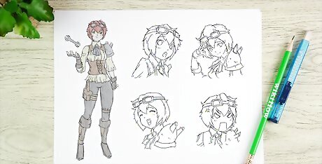Design some memorable characters and create initial sketches. Start by thinking about who your main character is going to be. Either start by sketching out an interesting character with a distinct visual style and decide what they’re like after you’ve drawn them, or pick 2-3 distinct personality traits and sketch a character that fits what you imagine based on their personality. There’s no real wrong way to invent a character, so let your imagination run wild! Characters can be animals, historical figures, or entirely invented from thin air. Make your personality traits as specific as possible will make it easier to jump-start an idea for a plot if you don’t have one. “Willing to do anything to help their family” is better than “loyal,” for example. You can certainly start with the plot first and develop your characters later. The characters and plot are equally important, so the order isn’t necessarily important. Just start with your best idea and work from there. To write compelling descriptions of people or their characters, watch people. There are several ways to observe people, how they interact, and note their manners and habits. These little elements make for great character descriptions. You can sit at a park or a public place like a cafe and observe people. Or watch TV and see how characters are depicted on the screen.