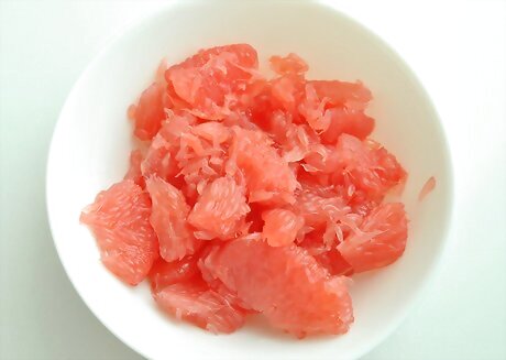Peel and segment 1 grapefruit. Rinse the grapefruit and cut away the peel or pull it off with your fingers. Place a bowl under the grapefruit and hold it with one hand. Then use a sharp knife to cut the segments away, leaving the bitter white pith behind. You'll use the juice that you catch in the bowl. This will help to blend the smoothie.
