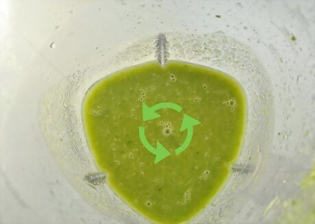 Blend the smoothie for 3 to 4 minutes. Put the lid on the blender and turn it on. Blend the smoothie ingredients until they're completely smooth and it's a uniform green color.