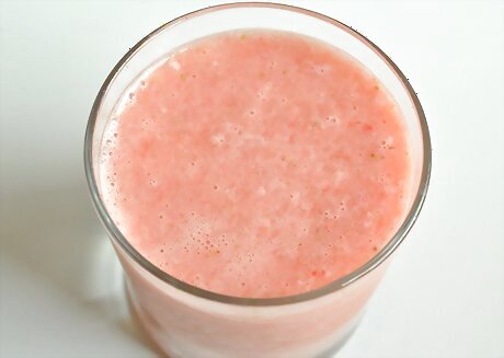 Put the lid on the blender and combine the smoothie for 1 to 2 minutes. Use your blender's smoothie setting or turn it on to blend until the ingredients are mixed. The smoothie should be completely smooth. If you still see chunks of frozen strawberries, you may need to turn off the blender and scrape down the sides before blending the mixture again.