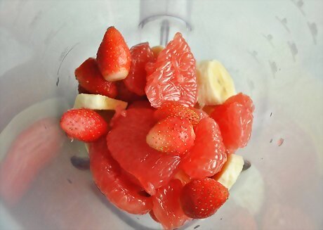 Put the grapefruit, 1 banana, strawberries, and juice into a blender. Place the grapefruit segments into a blender and pour in ⁄3 cup (160 ml) of orange juice. Add 1 peeled banana and 1 to 1 1/2 cups (150 to 228 g) of frozen strawberries. The frozen strawberries will thicken the smoothie. Use less of them for a thinner smoothie.