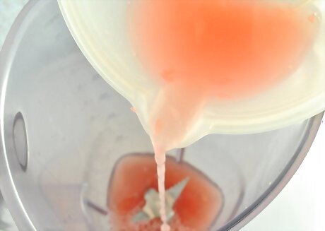 Cut 3 grapefruits and squeeze the juice into a blender. Get out 3 large pink grapefruits and rinse them. Then slice each in half and juice them. Pour the juice into a blender. Discard the seeds before you pour the juice in the blender. If you'd like to make a smaller batch of smoothies, halve the recipe.