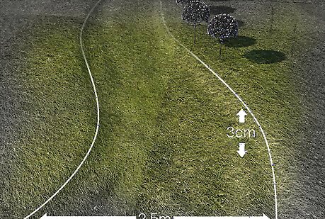 Plan out your path, using chalk spray or another temporary marker. First, plan out the basic route of your path. Next, use measuring tools to mark out an even width along your route. Double check to make sure there is no delicate plumbing or wiring along your intended route!