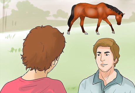 Get help from a professional trainer. If your horse is still exhibiting rearing problems, your horse may have learned that rearing will get it out of doing undesirable activities and following commands. If this is the case, your horse may need some retraining from a professional trainer. A professional trainer will be able to assess your horse's behavioral problems, work directly with your horse, and give you pointers on how to prevent problems like rearing in the future. You can find professional trainers by checking in your local phone book, or by searching online. Make sure your trainer is certified, and don't be afraid to ask about his or her experience and educational background. Be patient with your horse. Remember that your horse is not trying to be malicious, and with time and some hard work, you and your horse can become life-long partners.