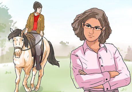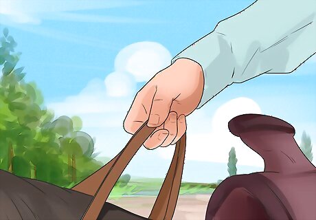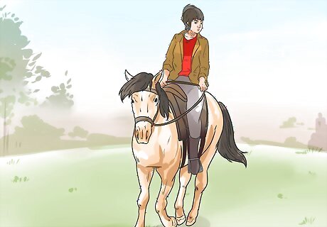Evaluate your own riding style. If there is nothing wrong with the bit and you're certain that nothing in the field startled your horse, your riding style could be the problem. Check your overall form and think about whether anything you're doing could make your horse uncomfortable or send mixed messages about what you want the horse to do. Your horse could be uncomfortable and frustrated if you give it conflicting signals. For example, kicking your horse forward while simultaneously pulling back on the reins will confuse and irritate your horse. If you're poorly balanced in the saddle, your horse may also try to rear out of frustration/discomfort.