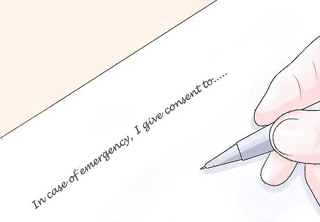 Write, "In case of emergency, I give consent to...to authorize medical care for my child or children." Write in the name of the person who will be caring for your child, then write the name of your child or children on the paper.