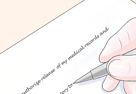 Write a document giving permission to a doctor or hospital to access your medical history and records created by another doctor or treatment facility. Doctors cannot access your medical history without your written consent.