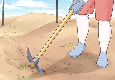 Wear good-quality work gloves to protect your hands. You will be doing a lot of digging, so wear work gloves to protect your hands from blisters and other injuries. They will also help you maintain a firm grip while you work.