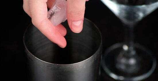 Fill the cocktail shaker with ice.