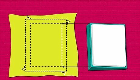 Cut a piece of fabric the size of the notebook cover plus two inches in each direction.