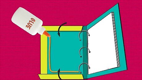 Wrap the edges of your fabric over the edge of the notebook and hot glue them to the inside edge of the notebook.