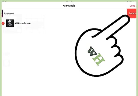Delete a song from your playlist. Go to Music > Playlists and find the playlist you want to edit. Flick down and tap Edit to bring up the option to delete the song. Tap Delete to remove the song from your playlist. When you finish deleting items from your playlist, tap Done. To delete the entire playlist, tap Playlists, flick down to Edit, and tap Delete next to the playlist you want to delete.