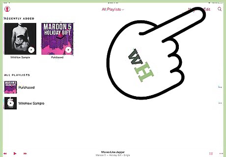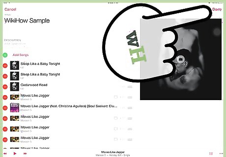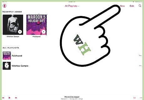 Start a new playlist. Open the Music app on your iPhone or iPad by tapping the "Music" icon. Select Playlist from the bottom menu. Tap New to start making your playlist. Tapping New will bring up a screen that allows you to add a title for your playlist, as well as a description. In the most recent update, Apple included an icon for a camera that allows you to add a thumbnail to your playlist. Tap the camera to either take a picture or select a photo from your camera roll for your playlist.