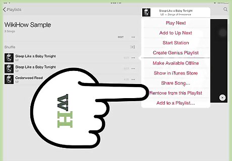 Organize your playlist. Find the playlist you want to organize and tap Edit. From here you can rearrange, add, or delete songs. To change the order of songs, press and hold the button on the right side of the track. This will allow you to drag the song to any place on the list. To delete songs press the delete symbol on the left side of the track. To add songs, press Add Songs at the top of the playlist.