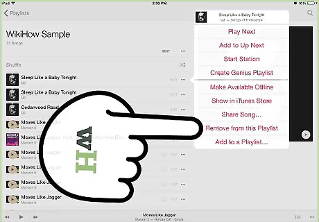 Remove a song from your playlist. If you decide you don't want a certain song on your playlist, you can delete it the same way you added it. Use the scroll wheel to select the song and hold the center button until you see the title flash. If you want to delete the entire playlist, go to Music > Playlists > On-The-Go > Clear Playlist and click Clear.