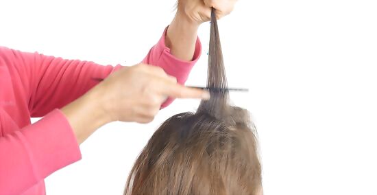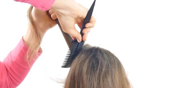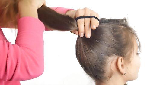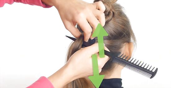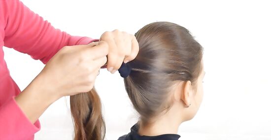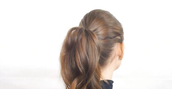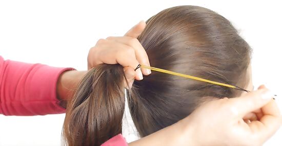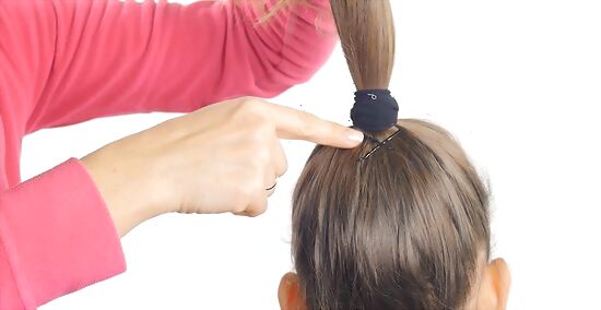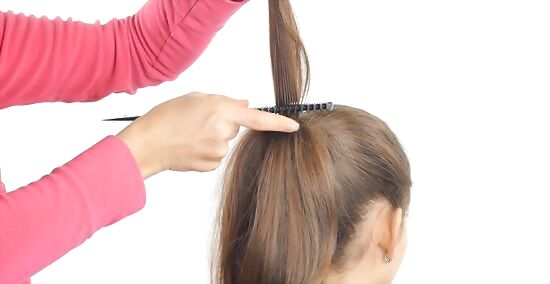 Split the ponytail in half horizontally. You can do this with your finger or with the handle of a rat-tail comb. Pull the upper layer away to reveal the bottom.