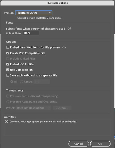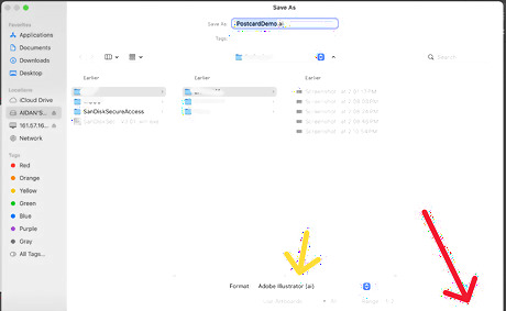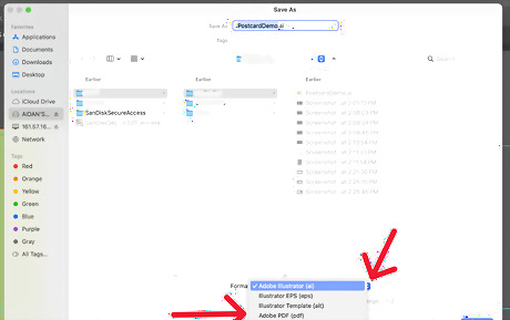 Take note of the prompt that opens when you save the postcard in the .ai (Adobe Illustrator) format. You can make some tweaks if you wish, but if not, click save.