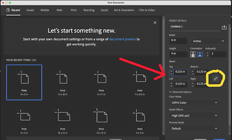 Set the bleed marks so that the art extends past the artboard itself and removes the possibility of white streaks along the edges. Make sure that the link icon shows that they are together, so that you only must change one of the values. It’s generally acceptable to have a 1/8 (.125) inch bleed around your artwork.