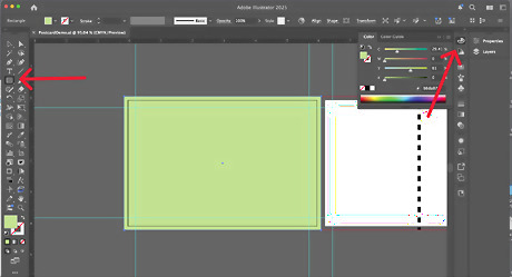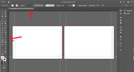 Press ⌘ Command+R (or Ctrl+R for Windows users) to reveal the rulers, if they aren’t revealed already. If you are planning to have text on your postcard, you are going to have to put rulers .25 inches into the artboards to ensure that they don’t get cut off. Once the rulers are showing, click and drag them to the artboards.