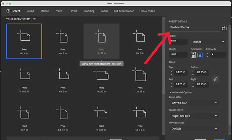 Make the dimensions of the postcard 4 inches tall and 6 inches wide. You can choose different sizes, but it’s generally recommended that you use these ones, as the minimum size for postcards according to USPS is 3.5 inches by 5 inches; and the maximum size is 4.25 inches by 6 inches.