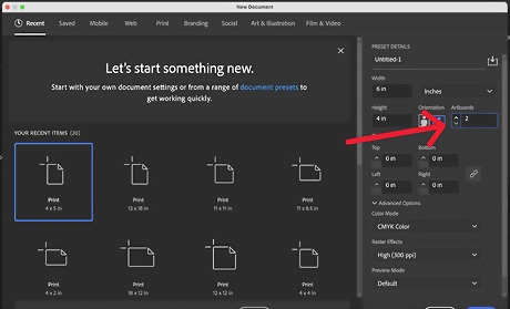 Add an additional artboard to the file. To do this, increase the "Artboards" number (which is found in the third row on the right-hand side of the screen) to two. One artboard will function as the back of the postcard, while the other will function as the front of the postcard.