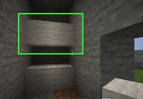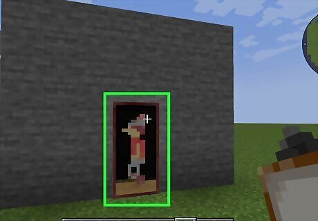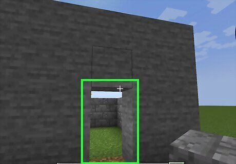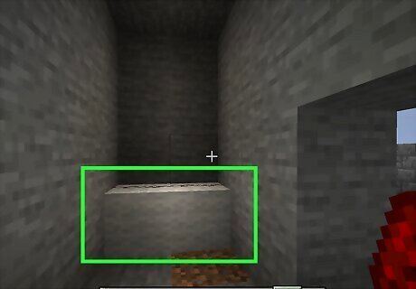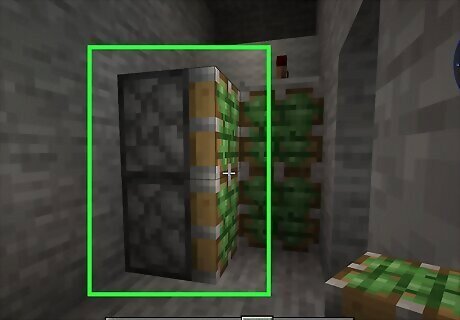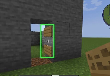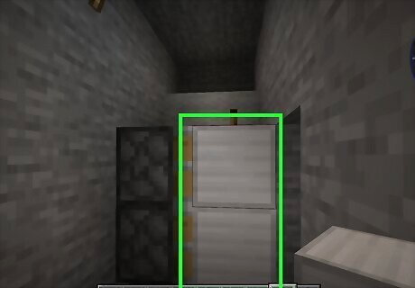 Place the entrance way blocks in front of the pistons. There should be an empty space for two blocks next to all the pistons. Place whatever block you want the entrance way to be made out of in that space. You can use any movable block that isn’t sticky. You cannot make a secret door out of obsidian, bedrock, or slime.
