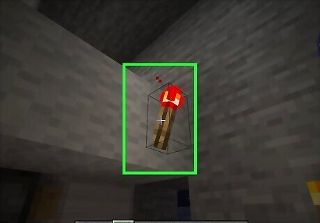 Place a redstone torch on the block you just placed. This redstone torch should be placed behind the block, facing away from the entrance way.