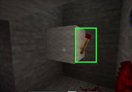 Place a button or lever two blocks above the door. This will be placed directly in front of the redstone above the entrance way. This lever will be used to activate the hidden door. If you want to place the lever or button in another location, you will need to make sure you connect it to the redstone above the doorway, but make sure it doesn’t connect to the redstone to the right of the door, or this will short it. You may want to add a lever on the inside of the chamber as well as the outside.