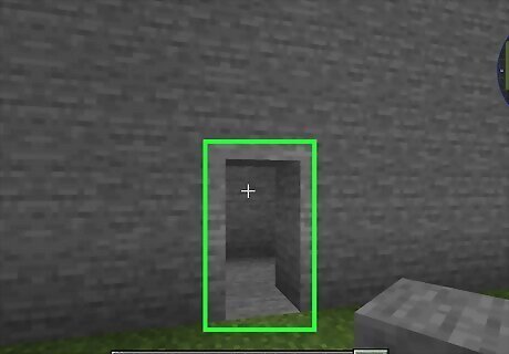 Remove a 1x2 space in a solid wall. This will be the space you pass through to get to the hidden room. Make sure you have enough space behind the entrance way to build all the mechanical stuff. You will need at least 2 blocks of free space behind the entrance way, 3 blocks of free space to the right, 2 blocks of free space to the right, and a ceiling that is at least 2 blocks above the entrance way.