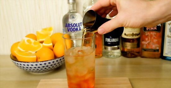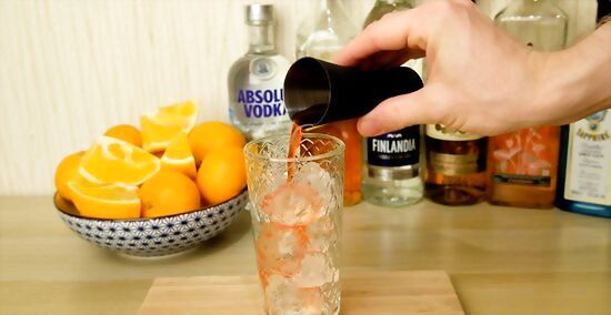 Pour 1 ounce of Southern Comfort into the highball glass.