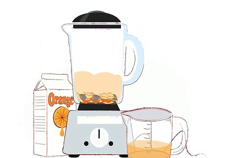Set up the blender or juice maker. Plug it in and be sure that all the pieces are in place.