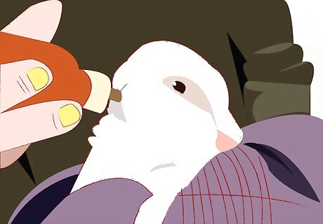 Feed your rabbit the smoothie. Provide a shallow dish to place the smoothie in. Remember: only 1 teaspoon of sweets (including smoothies) per every 2lbs the rabbit weighs.