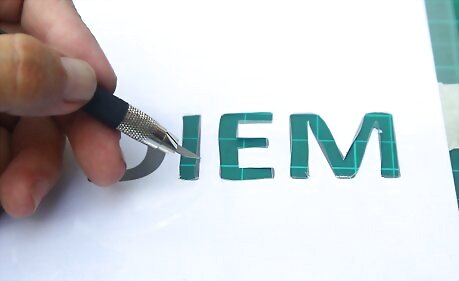 Cut the design out using a craft knife or Xacto blade. Place your contact paper onto a cutting mat with the stencil facing upward. Use a craft knife to cut through both the printed paper and contact paper. Remove any pieces of tape and regular paper that might still be stuck to the contact paper stencil when you are done. If you do not own a cutting mat, you can use a sheet of cardboard instead.