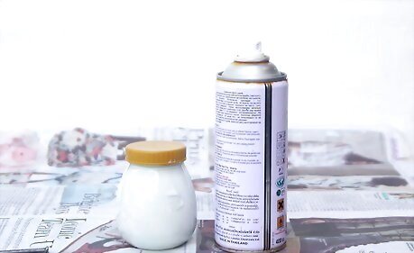 Set up your work area in a well-ventilated area. The best place to work would be outside, but you can also work in a large room as long as there are several windows open. Cover your floor with newspapers, a drop cloth, a plastic tablecloth, or several garbage bags.