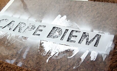 Peel the backing off of the contact paper, and press the stencil onto your doormat. Contact paper is not very sticky, so it likely won't stick to your doormat very well. In this case, you can secure it with sewing pins. Simply poke the pins straight through the contact paper and into the mat. Focus on the areas that have a lot of detail. Some people find that spraying the back of the contact paper will also help it stick.