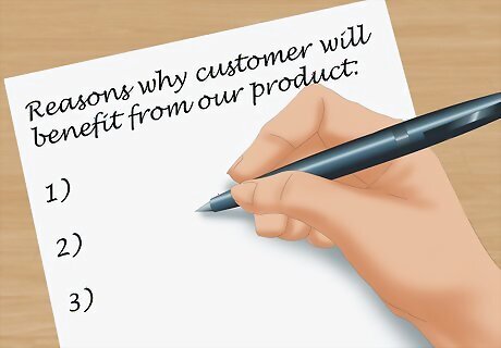 Write out the benefits of your product or service. When you’re creating the content for your flyer, you want to focus on the benefit to the customer rather than on your company itself. Use words like “you” and “your” instead of “we” or “I”. Create a bullet list of reasons why a person will benefit from using your service or coming to a specific sale or event.