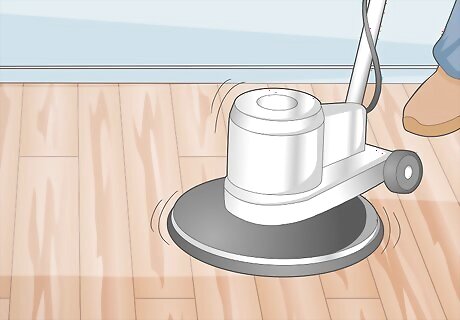 Wipe down the floor to remove dust from the sanding. Once the floor is completely sanded, use a vacuum or mop to remove the dust on the floor. Pay special attention to the corners of the room and the baseboards so the dust doesn’t get into the new coat of polyurethane. If you used a wet mop to get rid of the dust, dry the floor with a towel before applying the new coat.