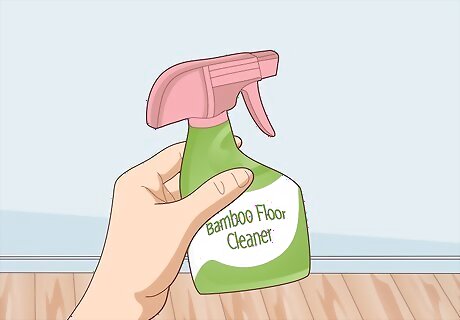 Choose a bamboo floor cleaner that doesn't contain acid. If you visit your local home improvement store, they'll have several options for spray cleaning products to use on your bamboo floors. Look for a product that's labeled as safe on bamboo and that doesn't contain ingredients like ammonia or vinegar—these can cause damage due to their acidity. A cleaner labeled as a "hardwood floor" cleaner works well on bamboo. Acids can harm the floor's top coat over time.