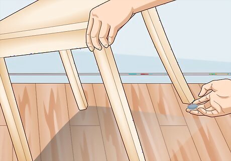 Place felt pads on furniture legs to prevent scratches. Moving furniture around can quickly scratch bamboo floors. Place felt pads on the legs of chairs, sofas, or any other surface that comes into contact with the floor to prevent any unnecessary damage. Look for furniture felt pads at your local home improvement store or big box store. They come in all different colors and sizes to match your piece of furniture.