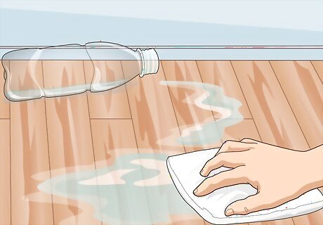 Wipe up any spills on the floor as soon as possible. Moisture that's left on bamboo floors causes damage like warping, so try to wipe up any spills as soon as they happen to prevent the liquid from soaking into the floor. Use a soft, clean cloth to wipe up the spill thoroughly.