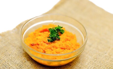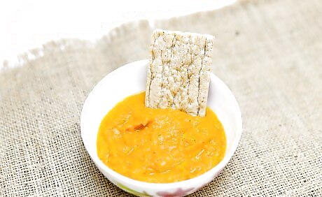 Puree and serve the butternut squash dip. Put the lid on the food processor and blend the dip ingredients until they're completely combined and smooth. Scoop the dip into a serving bowl and serve it along with crackers, chips, or vegetables. Although you can refrigerate the butternut squash dip, let it come to room temperature before you serve it.