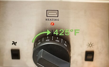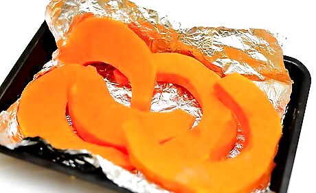 Turn on the oven and prepare the baking sheet. Preheat the oven to 425 degrees F (218 C). Lay a sheet of parchment paper on a baking sheet. You could also use aluminum foil. Ensure that the shiny side of the foil is facing up. Consider using a rimmed baking sheet so the pieces of squash don't slide off when you're transferring them to the oven.