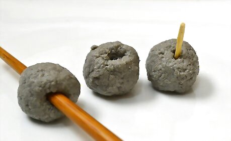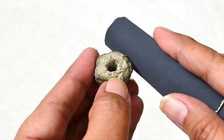 Poke a hole. Use a toothpick to poke a small hole in the middle of the bead. Then press a chopstick into the small hole created by the toothpick. Gently push the chopstick into the bead until it pokes out of the other side. Pat down and smooth any places where the paper mâché has cracked. Repeat this process for your remaining beads.