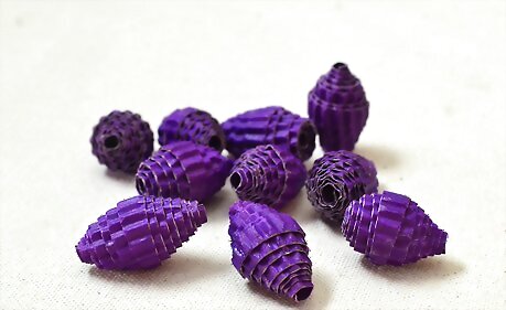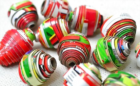 Roll up the beads. One at a time, wrap your pieces of cardboard around a straw. Make sure that the smooth side is facing in and the corrugated (bumpy) side is facing out. The side with the glue needs to be on the inside to hold the bead together. Once the glue dries – usually about 20 seconds – you will have a bead. After the glue has dried, remove the straw from the bead. Repeat to make the rest of your beads. Be sure to glue and then wrap each bead one at a time. If you apply glue to multiple pieces of cardboard and then wrap them, the glue will likely dry on some before you wrap them. You can wrap multiple beads on the same straw.