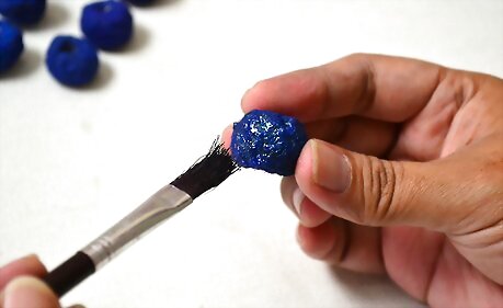 Paint the beads. With a small paintbrush, apply a coat of white acrylic paint to the beads. Once that has dried, apply a second coat of acrylic paint in whatever color you want. The white primer coat helps the second coat of paint be more vivid. Repeat for each bead, painting different patterns on each. You can find acrylic paint at your local craft or art supplies store.