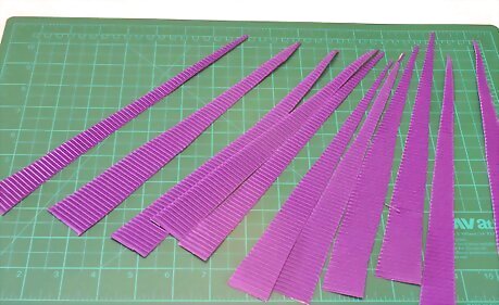 Cut the cardboard into triangles. Take a pair of scissors and cut a sheet of corrugated cardboard into triangles of different widths. You can also experiment with others shapes and sizes. Ultimately you just need a long piece of cardboard that you can roll up. You can find colored pieces of corrugated cardboard that are smooth on one side and bumpy on the other at your local craft store.