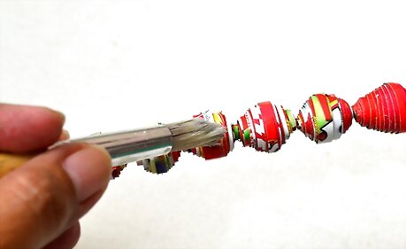 Seal the beads. Once you have wrapped all of your beads, apply a coat or two of Mod Podge. This will help the beads stay together. Once they are dry, the beads are ready to be threaded.